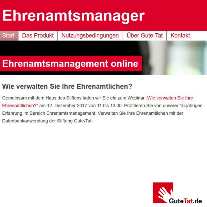 In Berlin, München und Hamburg nutzt die Stiftung Gute-Tat die eigens programmierte, internet-basierte Datenbankanwendung „Ehrenamtsmanager“.