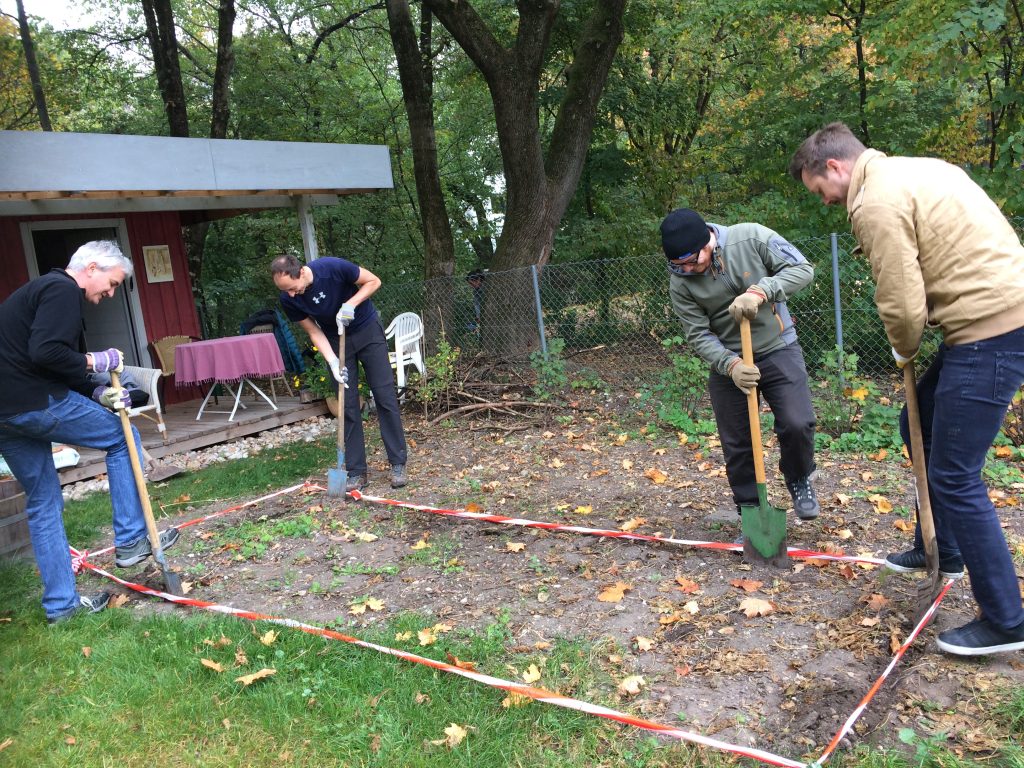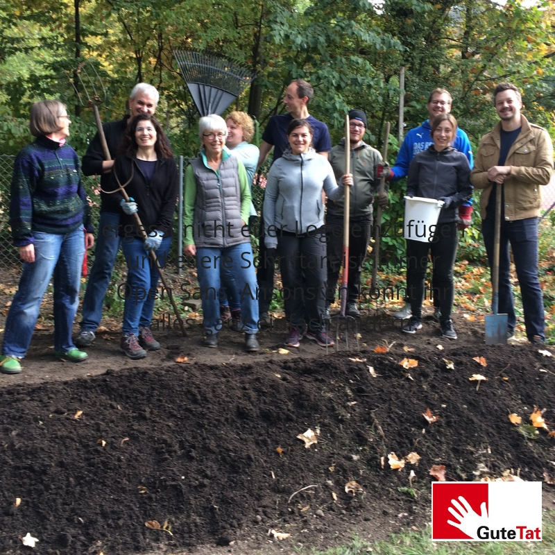 kümmerten sich 10 Mitarbeiter*innen im Oktober 2018 u.a. um den Aufbau von neuen Hochbeeten in der Tagesheimschule an der Hochstraße.