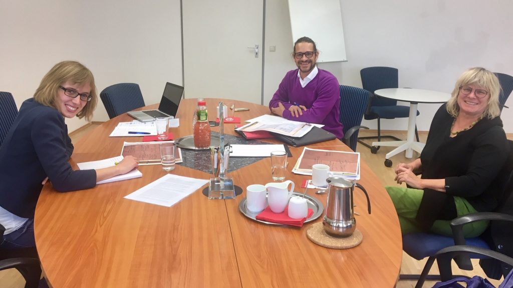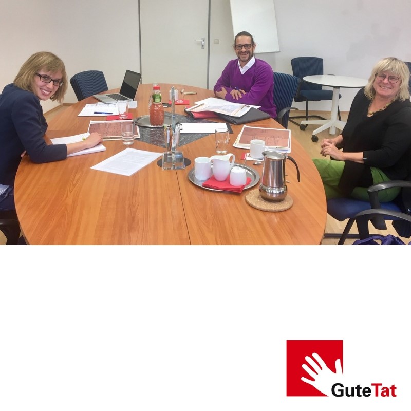 Philippe Ludwig (Landratsamt München), Ruth Burchard (Fachdienstleitung BE der Caritas-Dienste im Landkreis München) und Daniela Gast (links im Bild) trafen sich zum Planungsgespräch für die zukünftige Zusammenarbeit in Sachen Bürgerschaftliches Engagement und Corporate Volonteering im Landkreis München.