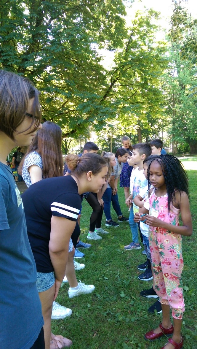 Auf dieser Basis entwarfen sie für die Deutschklasse einen gemeinsamen Spielevormittag mit Picknick im Park. In einem eigens entwickelten Buddy-System beschäftigten sie sich in Zweierteams mit den Kleinen, leiteten in der großen Gruppe Spiele an und schlossen beim gemeinsamen Essen nähere Bekanntschaft. Das ganze Projekt wurde sehr partizipativ organisiert und intensiv reflektiert.