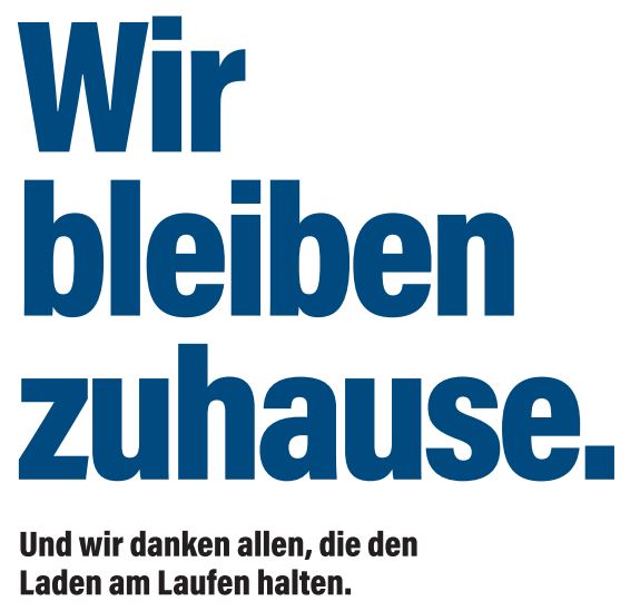 In vielen deutschen Zeitungen erscheint gedruckt und digital eine Anzeige mit dem Slogan: „Wir bleiben zuhause. Und wir danken allen, die den Laden am Laufen halten.“
