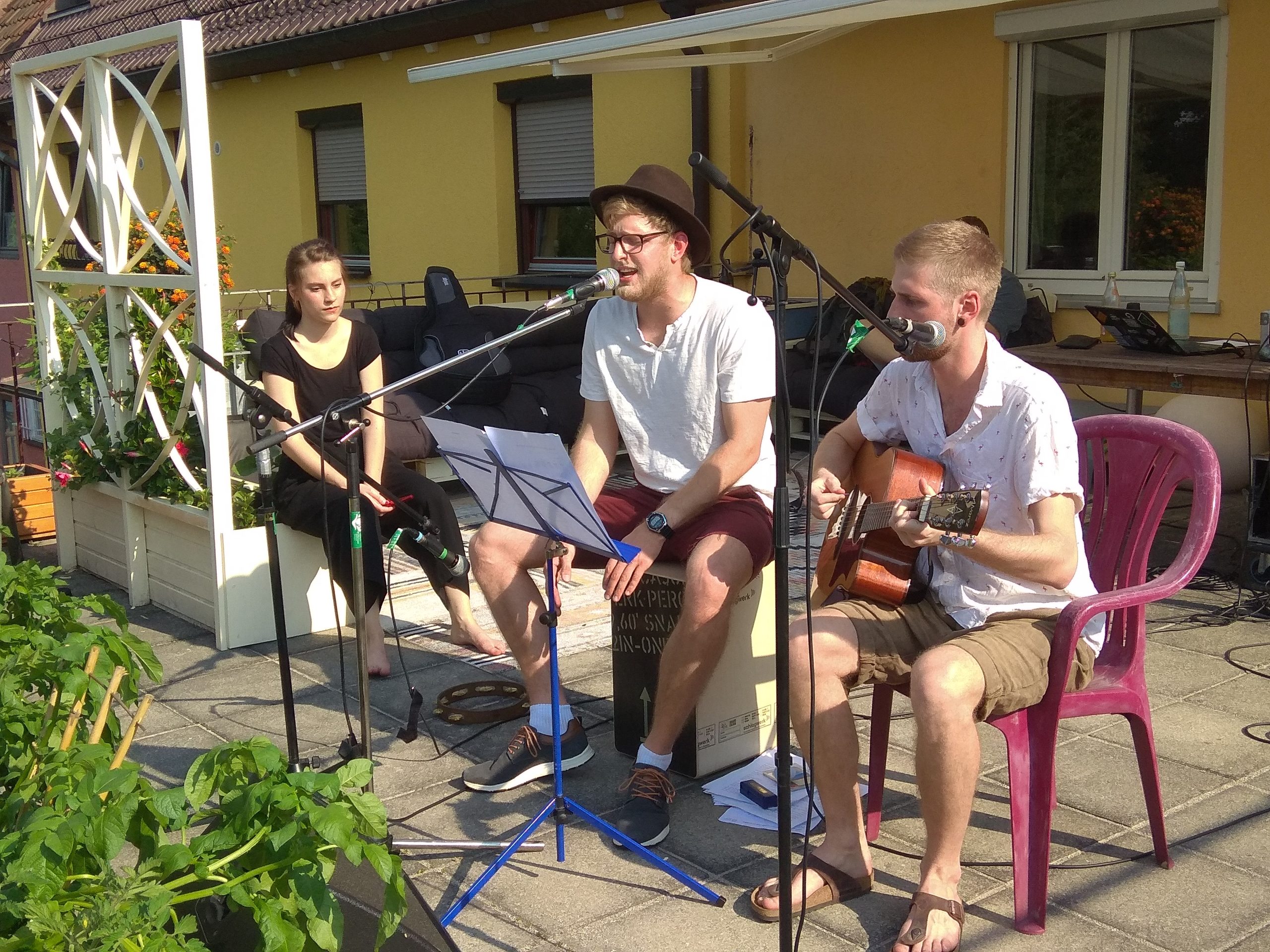 Am Freitag 26. Juni um 17 Uhr spielten Joschua Krink & friends Mitsingsongs, Balladen und akustischen Rock & Pop auf der lauschigen Dachterrasse in der Dientzenhoferstr. 68 – ein voller Erfolg bei Groß & Klein, so dass die Einrichtungsleitung Uschi Weber die Band hoffentlich zu einer Wiederholung des Konzerts einlädt!