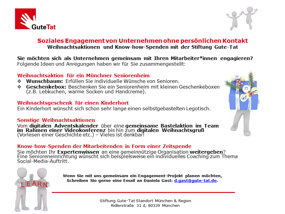 Weihnachtsaktionen und Know-how-Spenden mit der Stiftung Gute-Tat: