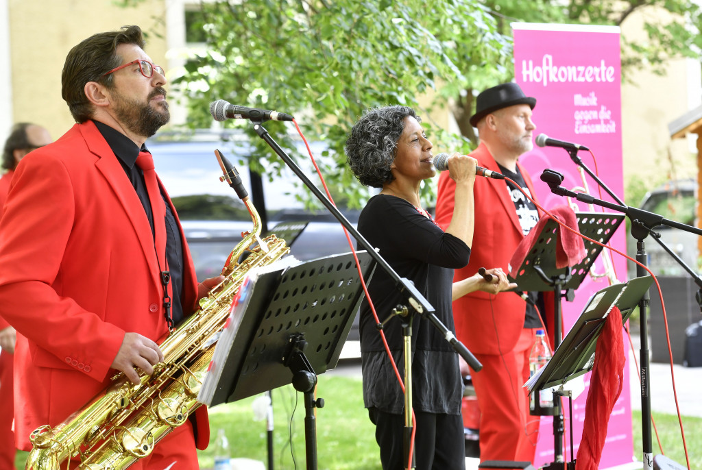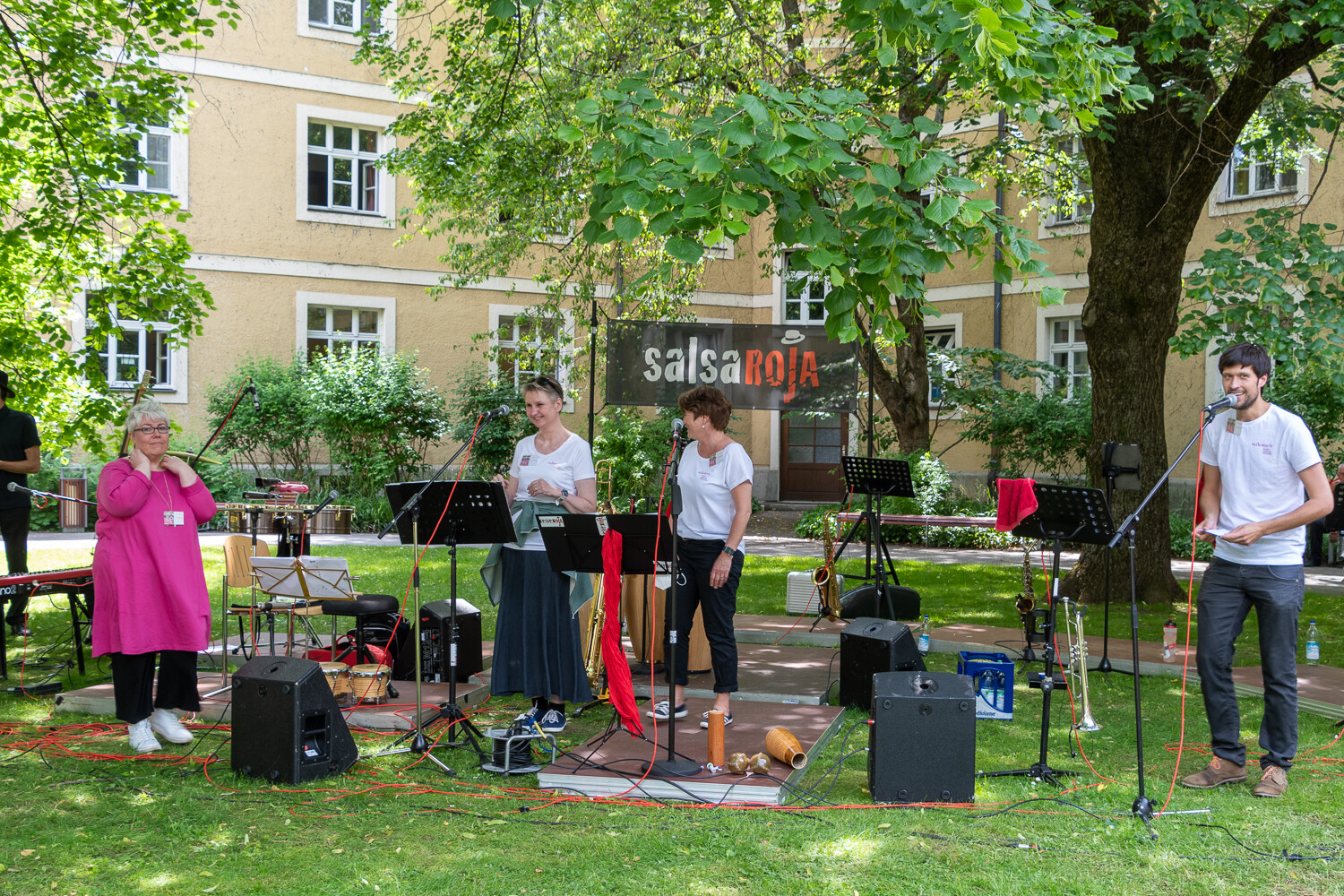 Die Band Salsa Roja war ein echter optischer & musikalischer „Hingucker“ und hat den Bewohner*innen mit ihrer schwungvollen Musik „ein Lächeln ins Gesicht gezaubert“ – ganz im Sinne unseres Mottos!