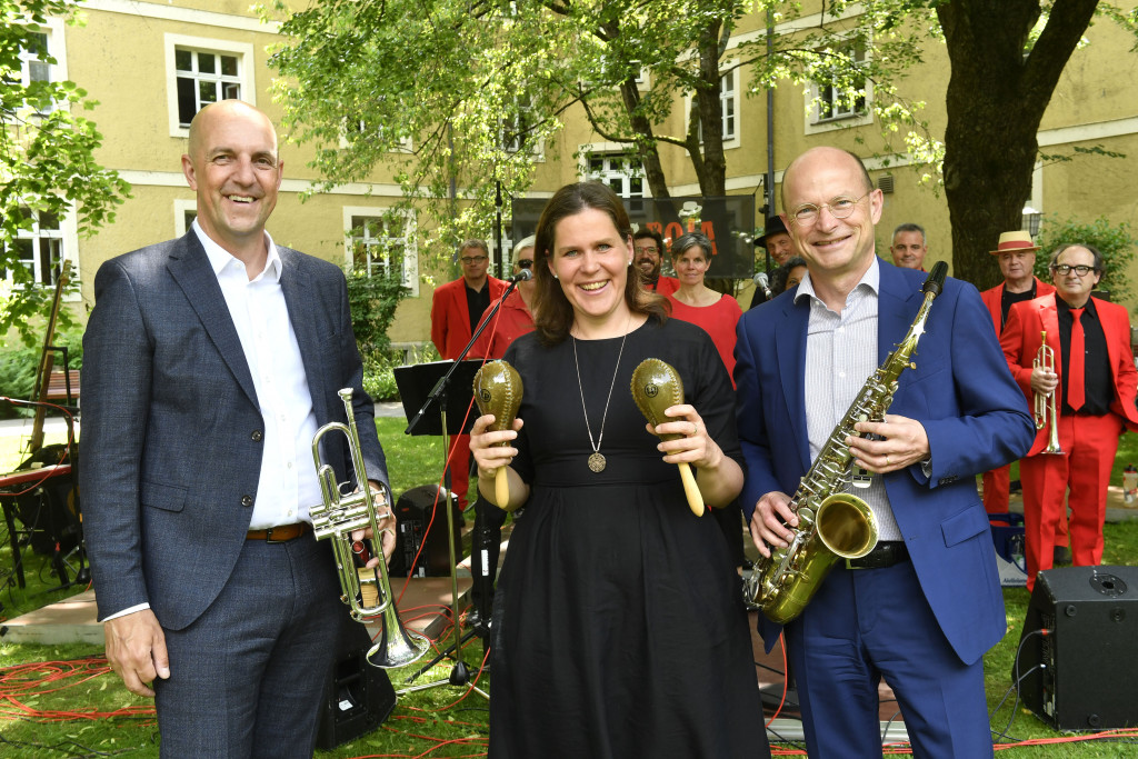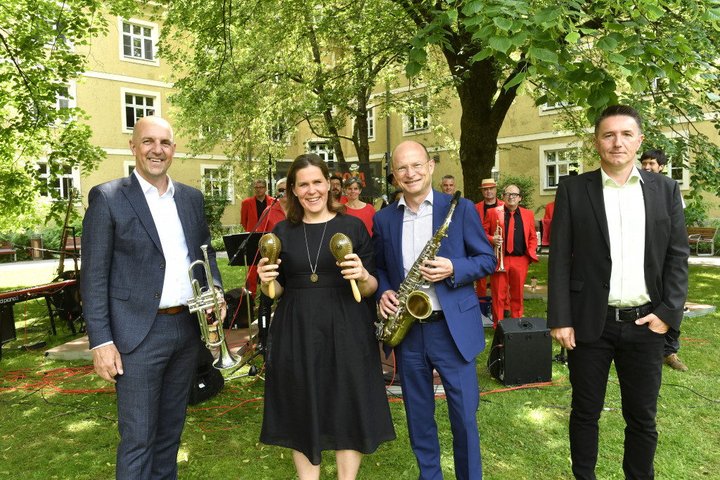 Unsere Ehrengäste und Förderer vom Sparkassenverband Bayern (Professor Dr. Reuter, Dr. Krüger) und von der Stadtsparkasse München (Herr Hattenkofer) waren bester Laune und haben sich mit der Bürgermeisterin Verena Dietl über die Kooperation bei diesem Projekt gefreut.