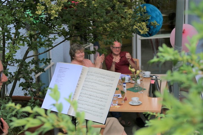 Nach klassischen Stücken, schottischen und bayerischen Tänzen, Tango und Klezmer schloss das Konzert mit bekannten Volksliedern ab. Zur Freude des Publikums, das bei „Das Wandern ist des Müllers Lust“ „Die Gedanken sind frei“, „Horch was kommt von draußen rein“ kräftig und fröhlich mitsang!