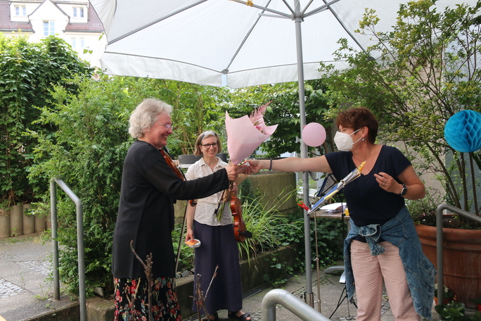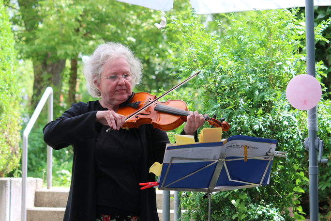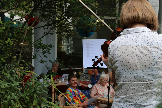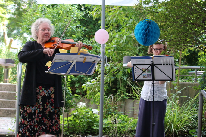Bei Kaffee & Kuchen und im schönen schattigen Innenhof der Einrichtung war das Geigenduo Carolin Scholz und Erika Spieß an beiden Nachmittagen der krönende Abschluss des Fests!