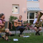 Nach klassischen Stücken, schottischen und bayerischen Tänzen, Tango und Klezmer schloss das Konzert mit bekannten Volksliedern ab. Zur Freude des Publikums, das bei „Das Wandern ist des Müllers Lust“ „Die Gedanken sind frei“, „Horch was kommt von draußen rein“ kräftig und fröhlich mitsang!