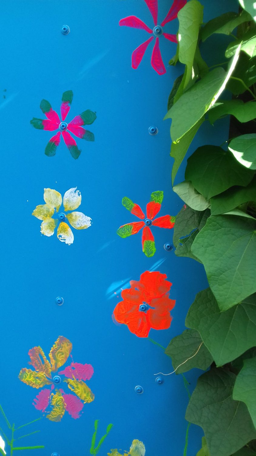 Unter der Anleitung von Künstlerin Carolin Leyck und Lehrerin Verena Böhl haben sie die Kinder in farbenfroher Stempeltechnik in eine prächtige Augenweide verwandelt und damit ihre Gartenoase auch künstlerisch ausgestaltet.