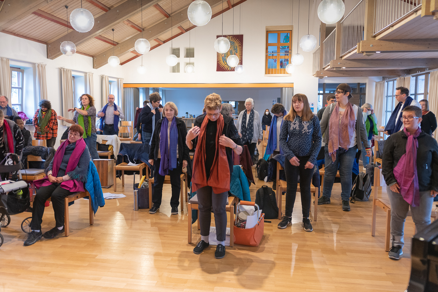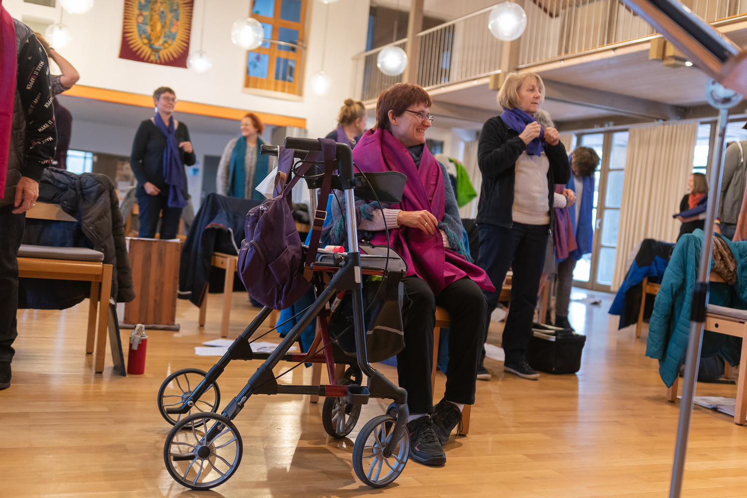 Über 30 Chormitglieder mit und ohne Handicap studierten am 13. November Weihnachtslieder unter Anleitung der jungen Chorleiterin Lena Weixler und des Pianisten Manfred Herrmann ein.