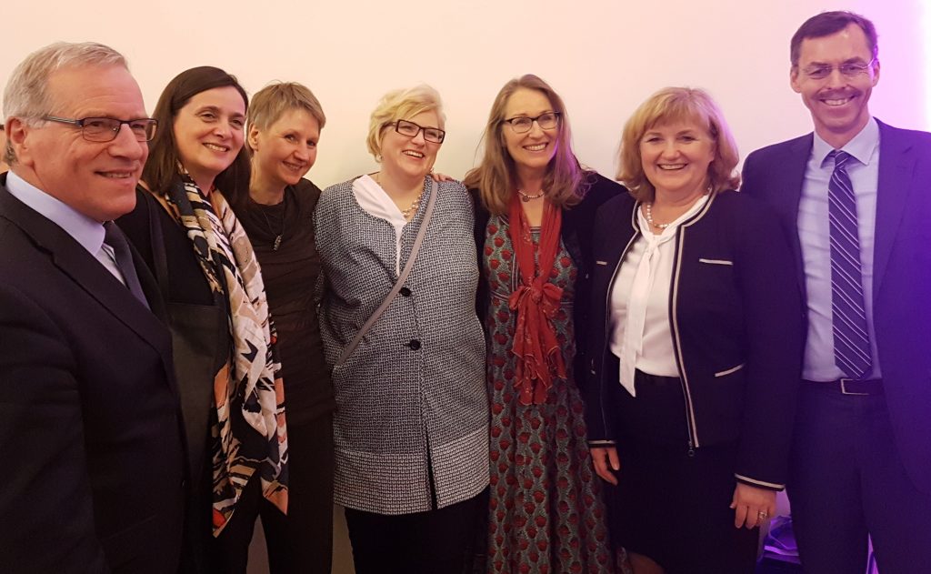 Das Foto entstand bei der Preisverleihung des „Bayerischen Innovationspeis Ehrenamt 2018“ am 13. März 2018 im Schloss Nymphenburg für die gemeinsame Initiative „Bürgerbeteiligung“ von Stiftung Gute-Tat und BürgerStiftung München. (v.l.n.r.: Staatssekretär Johannes Hintersberger, Carmen Paul, (BürgerStiftung München), Nicole Kertész (Gute-Tat), Petra Seifert (Optima-Aegidius-Firmengruppe), Petra Bauer-Wolfram (Gute-Tat), die Ehrenamtsbeauftragte für Bayern, Jürgen Grenz (Gute-Tat)