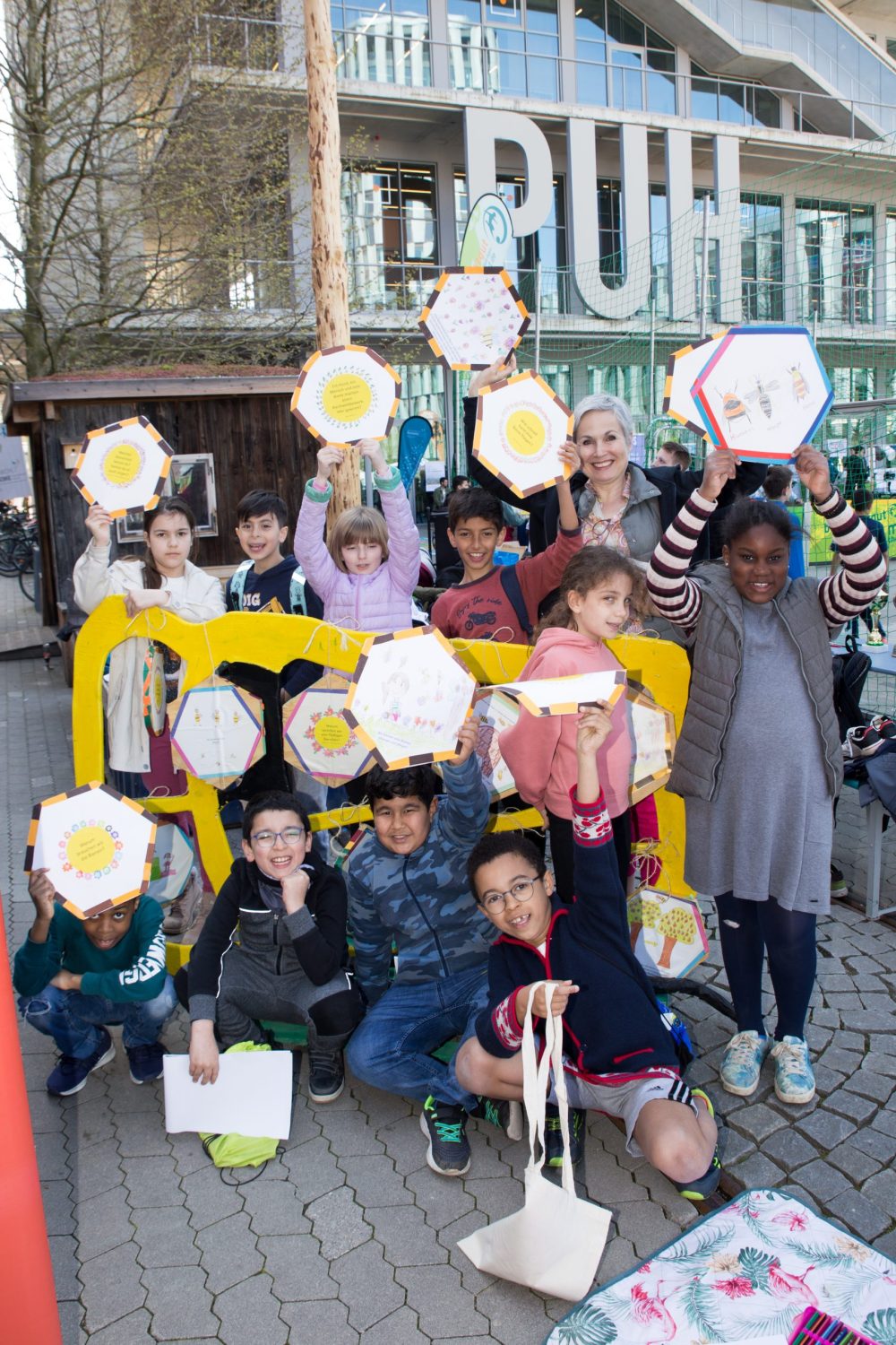 Unsere Isarbienchen vom SFZ München Mitte II kamen mit ihrer interaktiven Quiz- Biene und stellten den Besucher*innen knifflige Fragen zum Thema Insektenvielfalt, z.B. Wie schnell fliegt eine Biene?