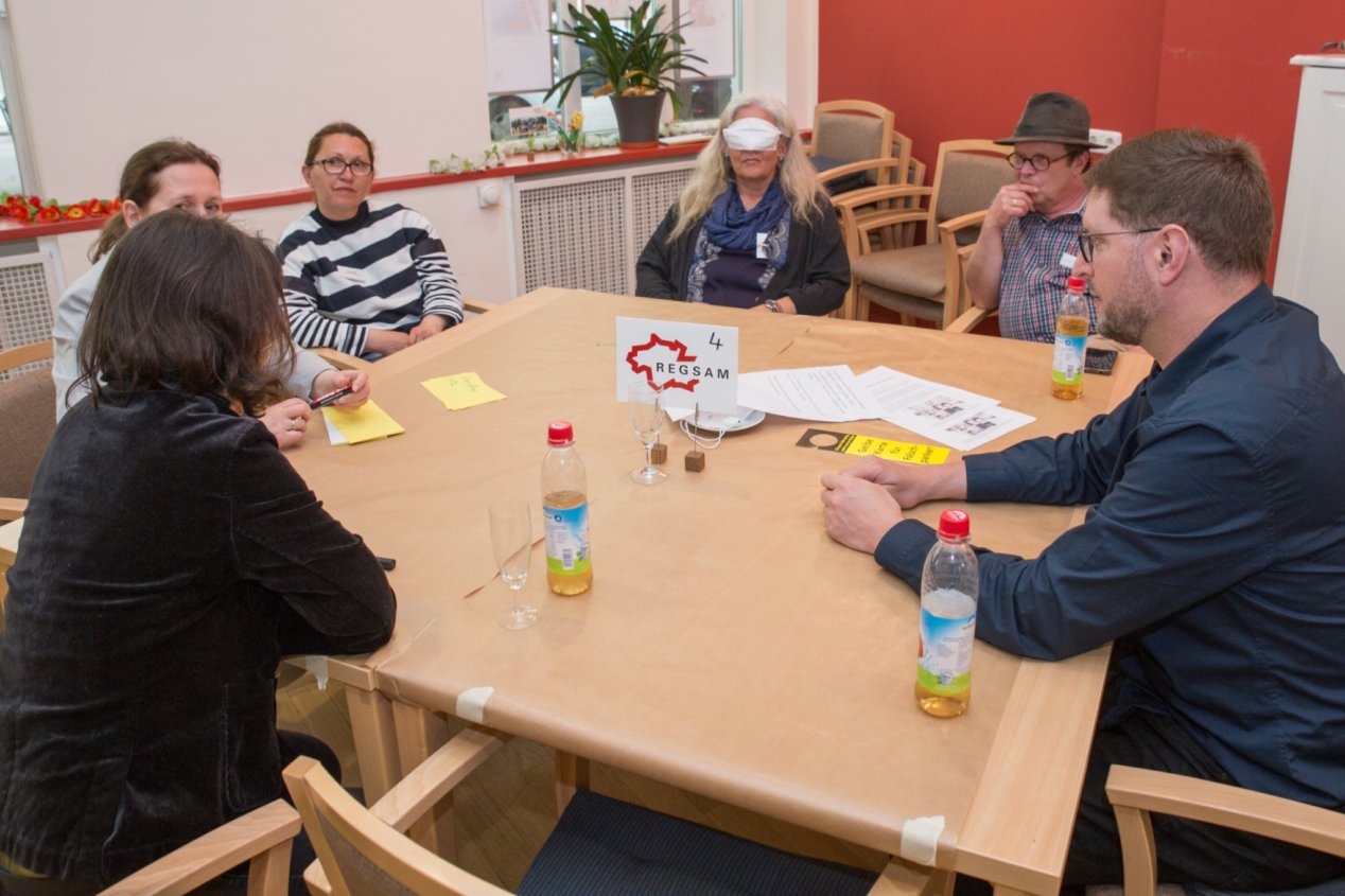 An fünf Tischen tauschten sich die REGSAM-Netzwerkpartner mit interessierten Gästen zum Thema Inklusion im Stadtteil aus und diskutierten diese Fragen:
