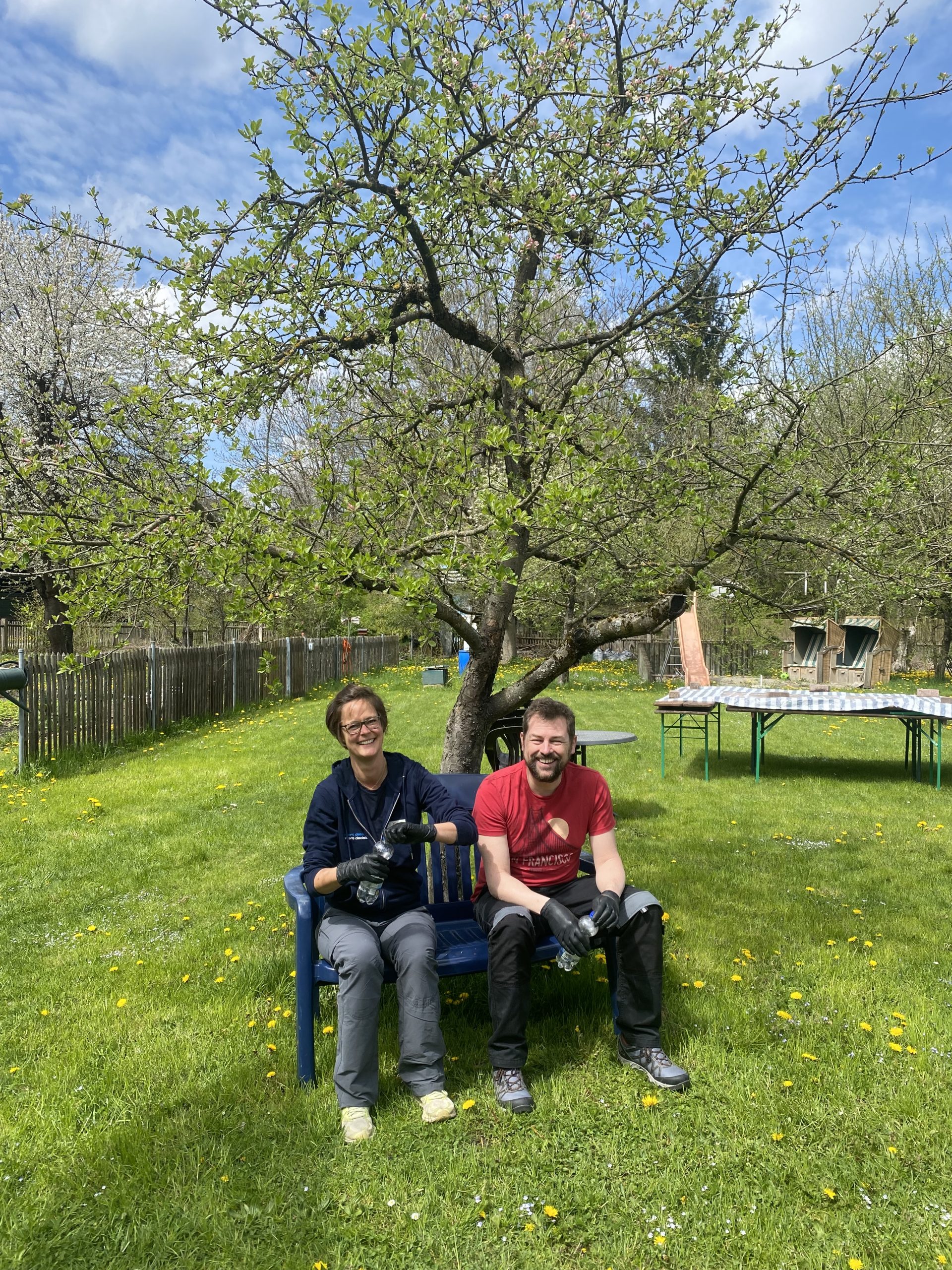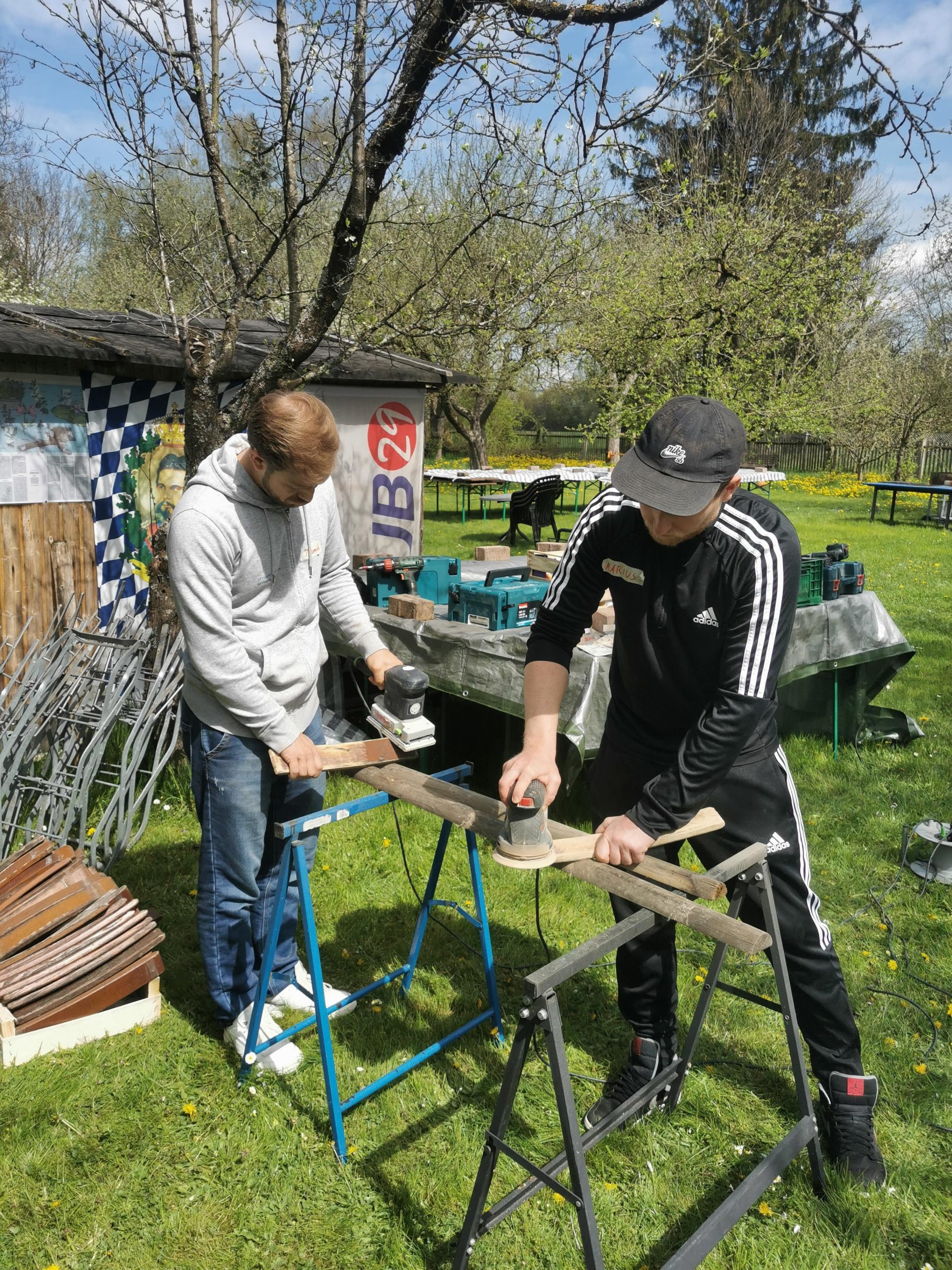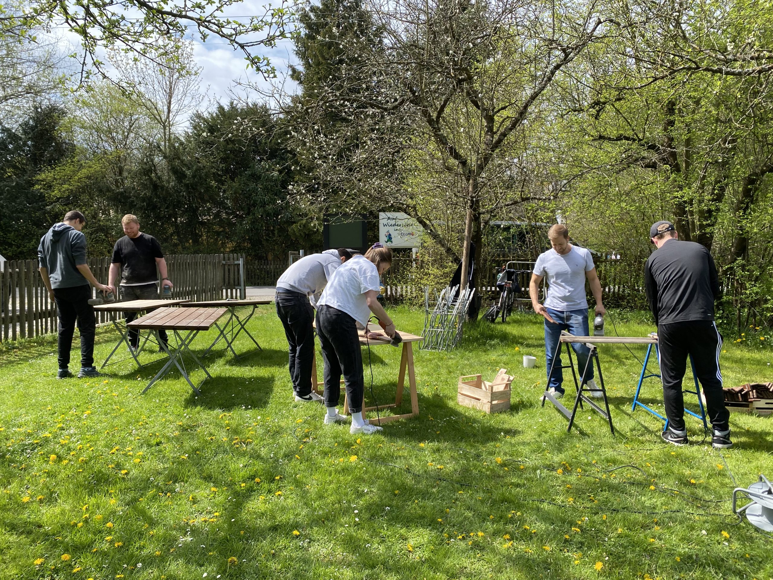 Eine Gruppe widmete sich im Anker der Renovierung des Büros und für die andere Gruppe ging es bei bestem Wetter in den Garten nach Moosach, um die Einrichtung und das Ambiente der Gaststätte „Alkoholfreier Treff“ etwas aufzuhübschen.