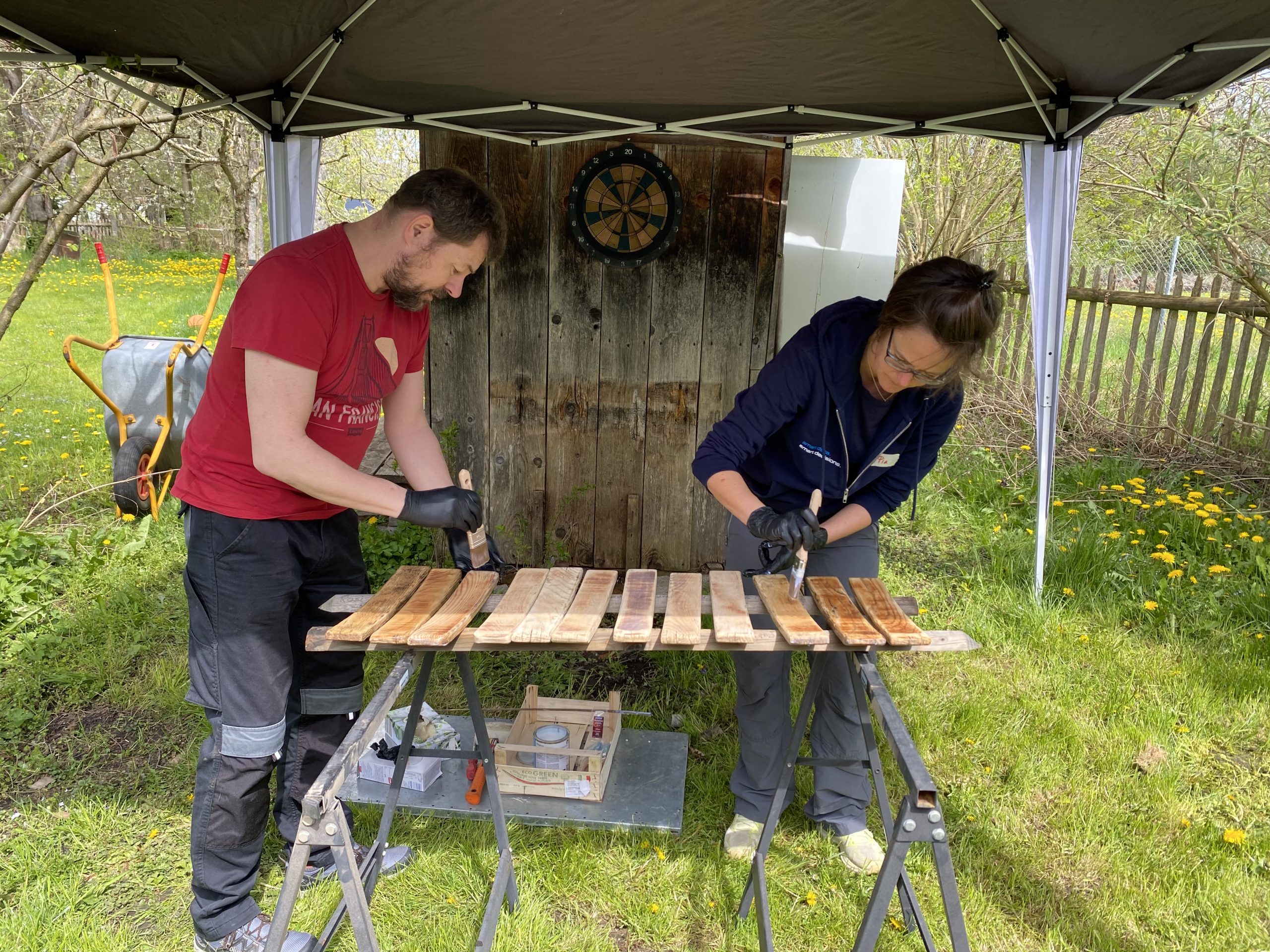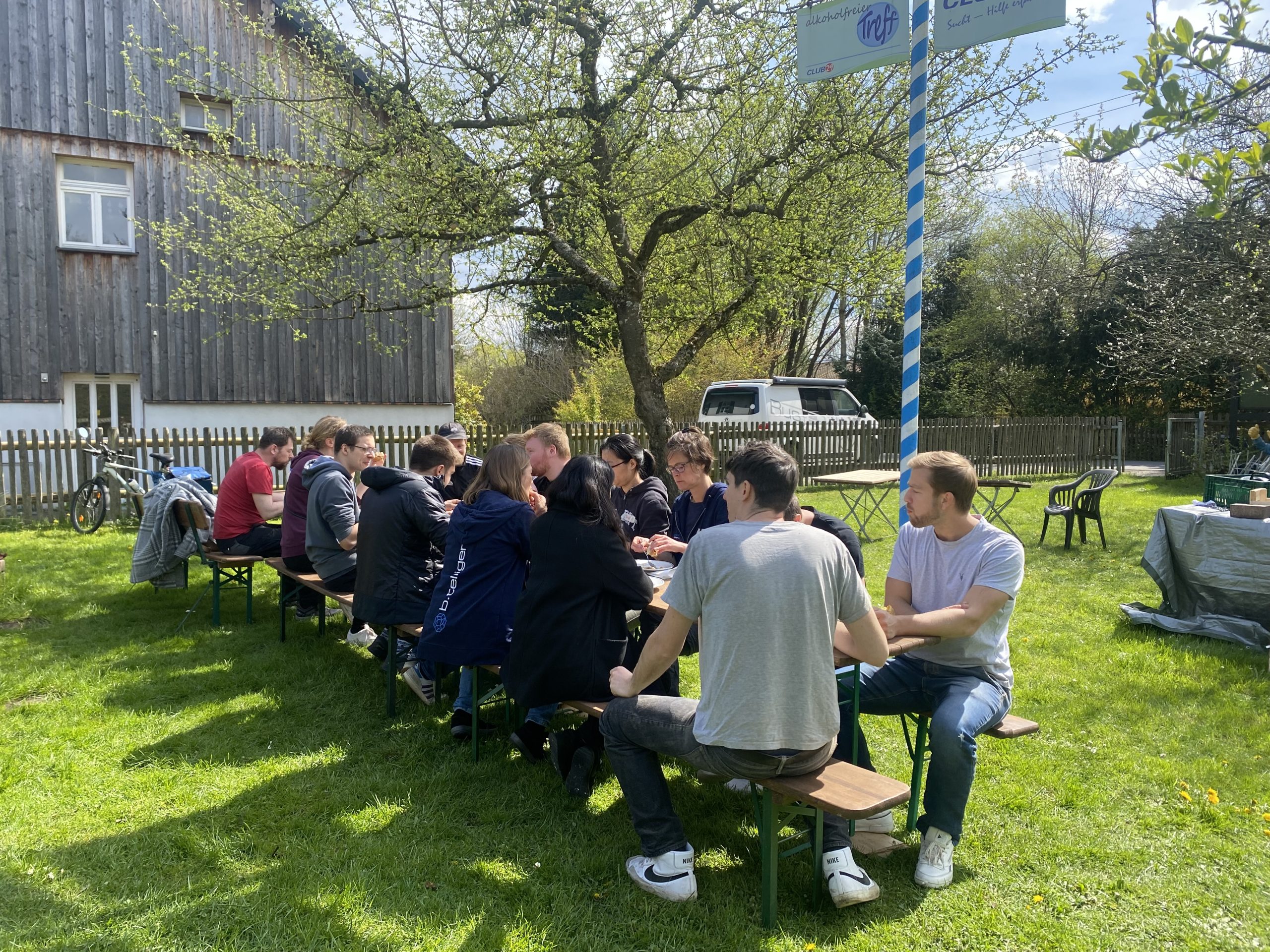 Anstelle eines klassischen Team-Events fuhr am 27. April 2023 ein Team aus 14 b.telligent Mitarbeiter*innen zur Kontakt- und Begegnungsstätte „Der Anker“, die zum Club 29 e.V. gehört, um dort tatkräftig anzupacken.