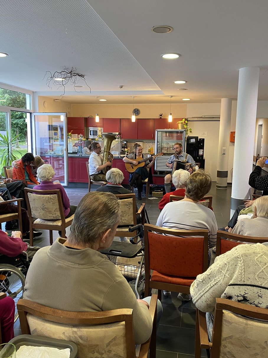 Seit Corona 2020 bieten wir unseren sozialen Partner-Organisationen „Hofkonzerte“ in ihren Einreichtungen an, um vielen einsamen Menschen ein bisschen Freude zu bereiten.
