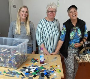 Unter fortlaufender Sortierung der gespendeten Lego-Steine begannen wir in 2 Gruppen; manche Teilnehmer kamen vom Vba, dem Verband behinderter Arbeitgeber und einige Ehrenamtliche unterstützten uns im Rahmen eines Social Days.