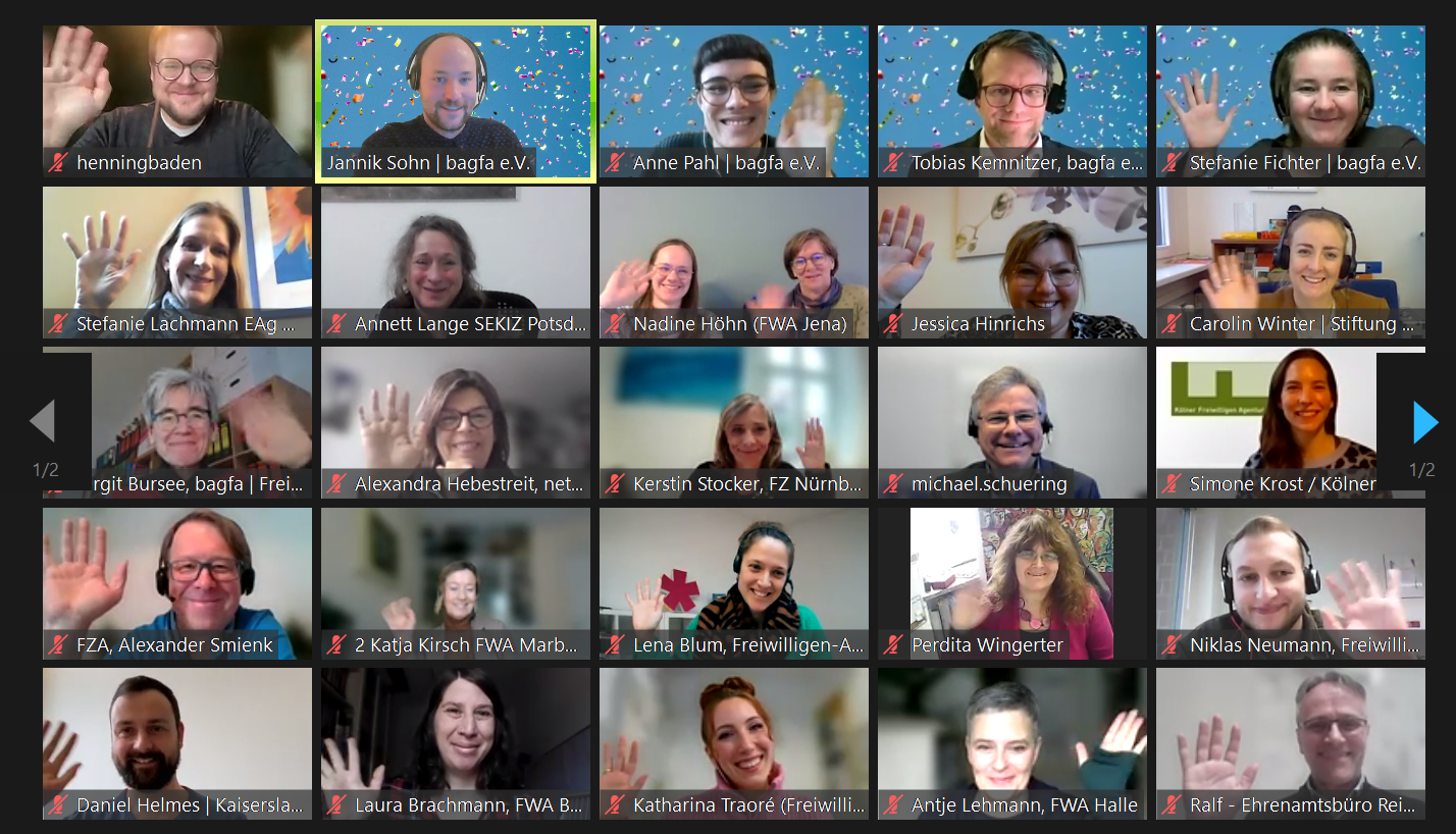 Bei einer digitalen Jurysitzung am 12. Dezember 2023 wurden die von Freiwilligenagenturen aus ganz Deutschland eingereichten Bewerbungen gesichtet, ausführlich diskutiert und bewertet. Nach intensiver und leidenschaftlicher Diskussion legte sich die Jury auf 6 Gewinnerprojekte fest – eine Entscheidung, die nicht leicht fiel.