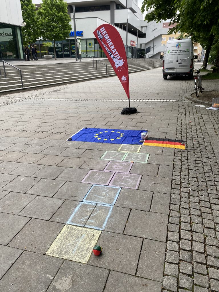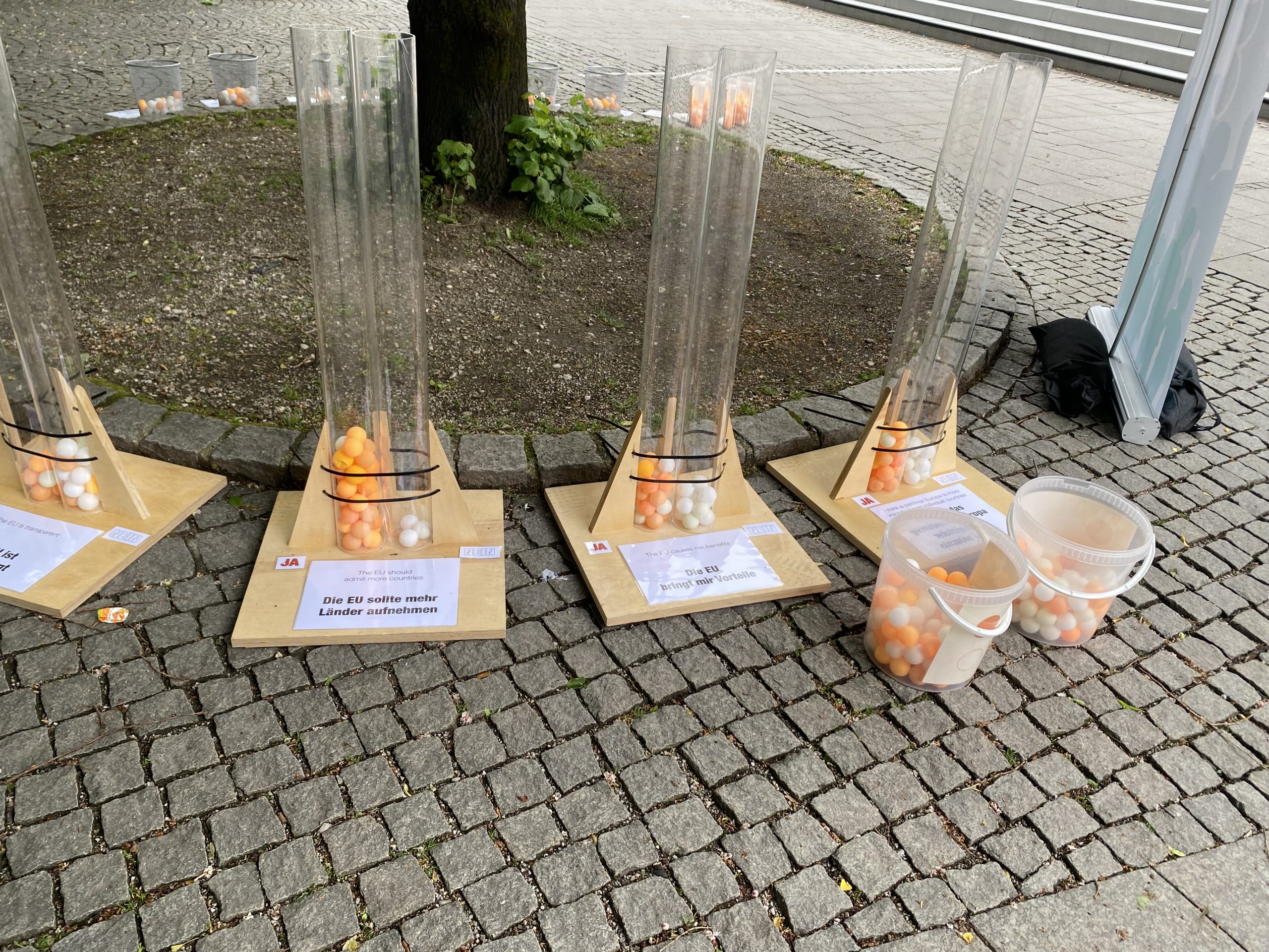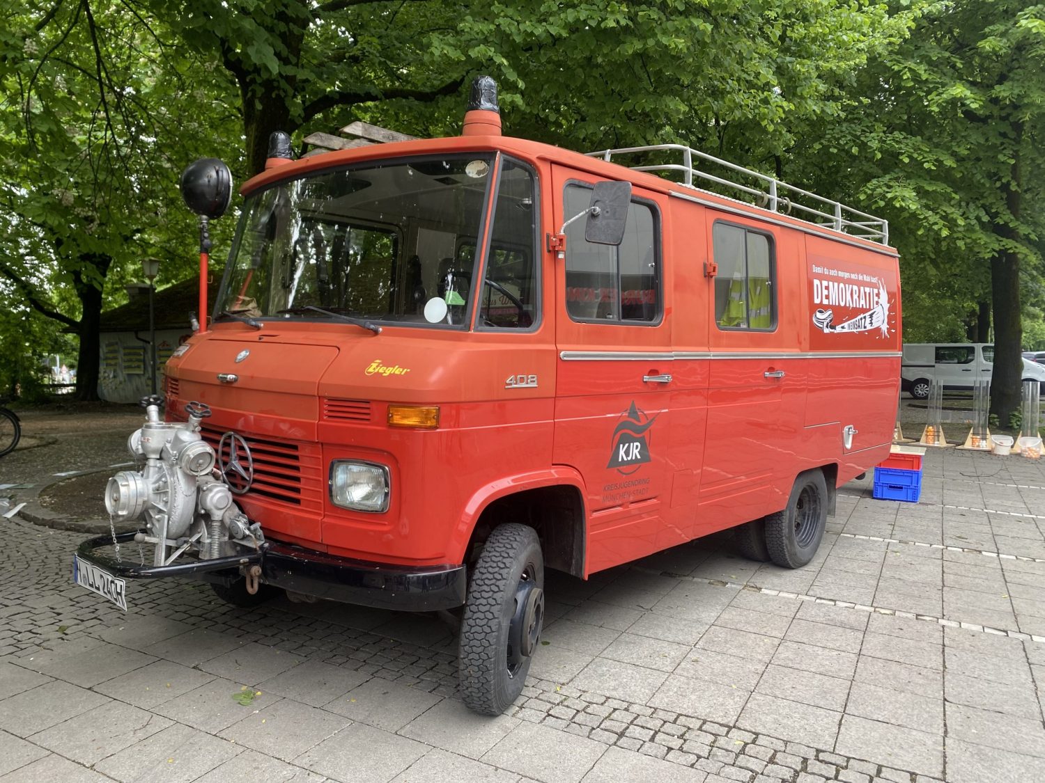 Der erste Stopp der aktuellen Tour vor der Europawahl 2024 des Demokratiemobil war am 07.05.2024 in unserer Nachbarschaft  – vor dem Forum Schwanthalerhöhe.