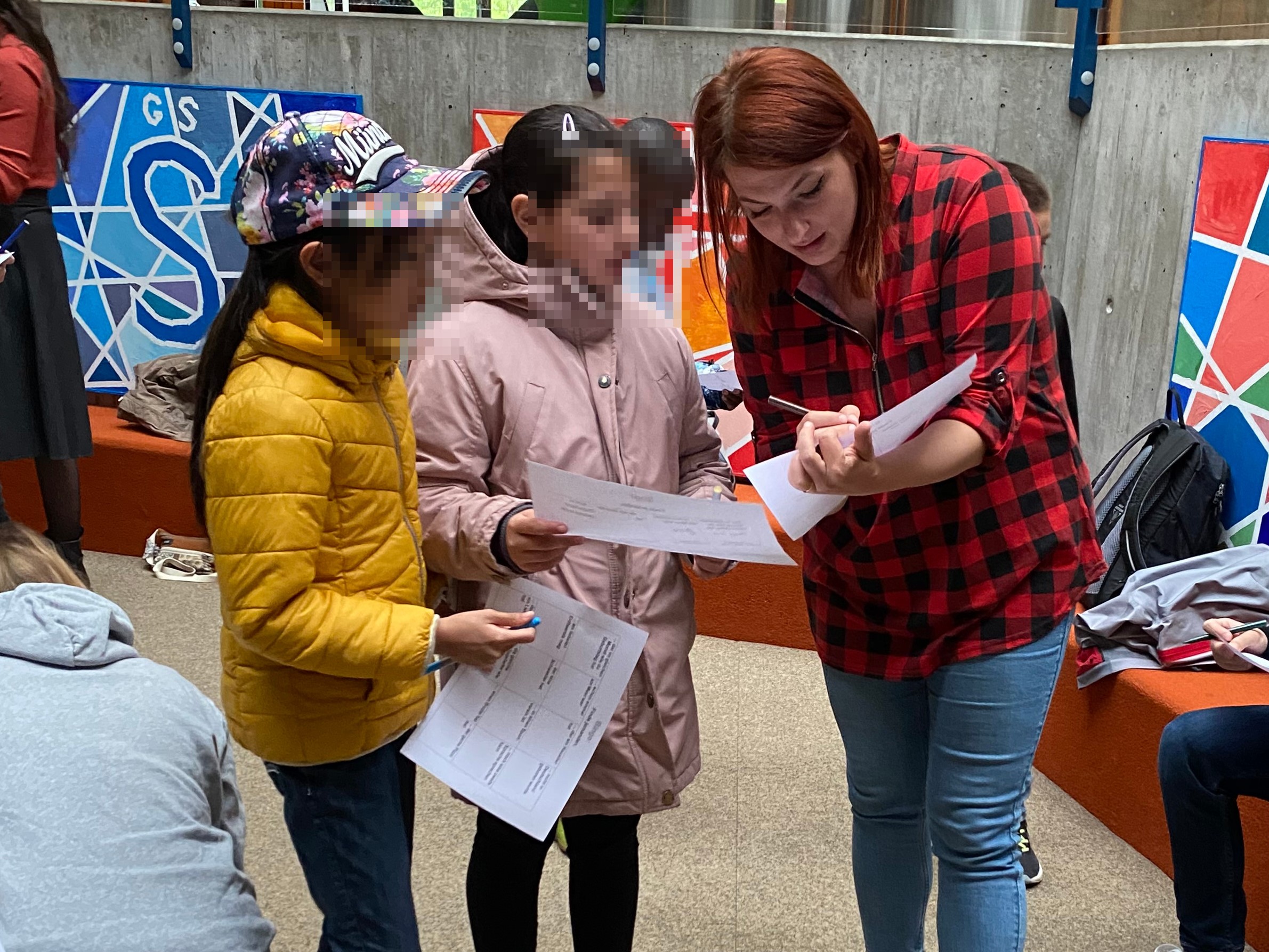 Bevor die Kinder und das Team aber die Lamas kennenlernen durften, gab es erstmal ein Kennenlernspiel zwischen den menschlichen Teilnehmer*innen des Ausflugs. Kinder und Erwachsene sollten mit einem Bingo etwas über einander herausfinden und hatten dabei viel Spaß.