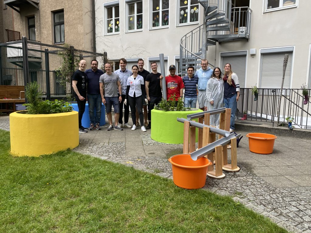 Hier wollten die motivierten Mitarbeiter*innen im Rahmen eines von der Stiftung Gute-Tat organisierten Social Days den Außenbereich der Einrichtung verschönern und für ein besonderes Highlight für den Sommer sorgen. Konkret standen drei Aufgaben auf dem Programm: