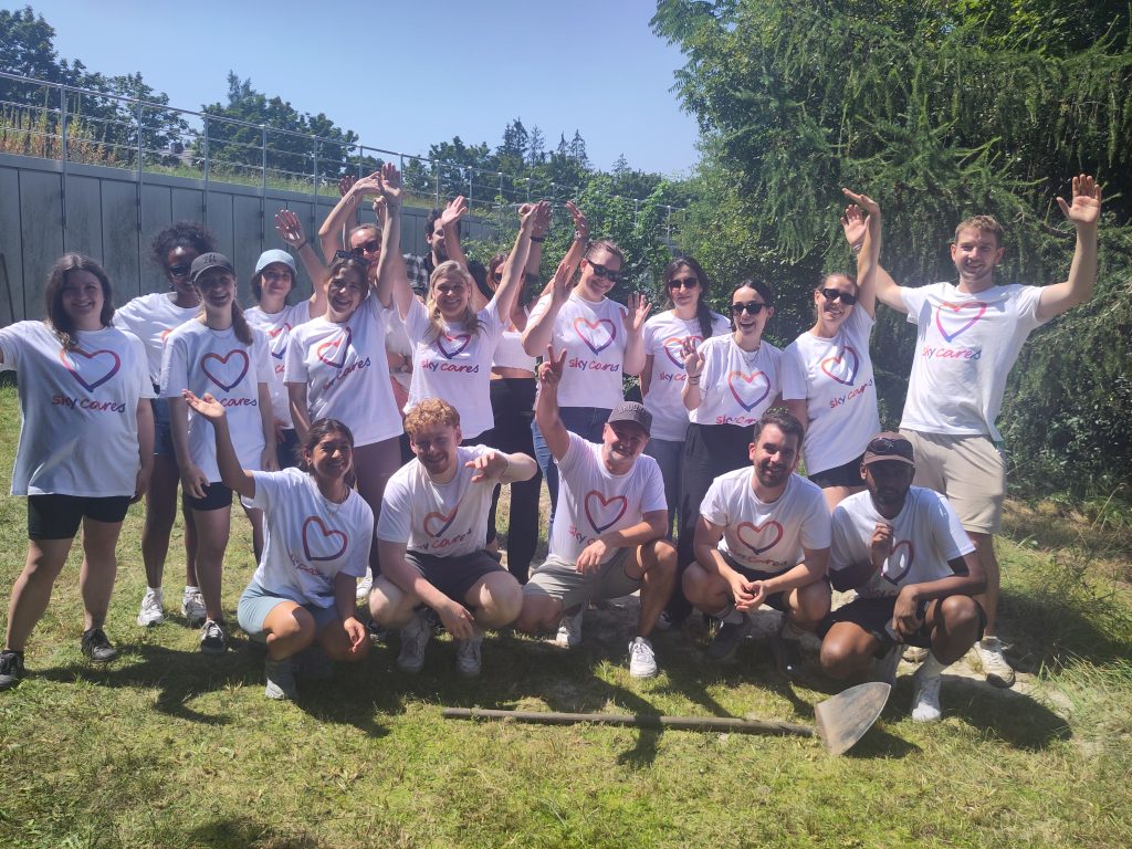 Mit Musik und guter Laune war das junge Sky-Team bei brütender Hitze im Einsatz! Zum Mittagessen ging es in die Wirtschaft zum Grünen Baum mit einem lauschigen Biergarten.