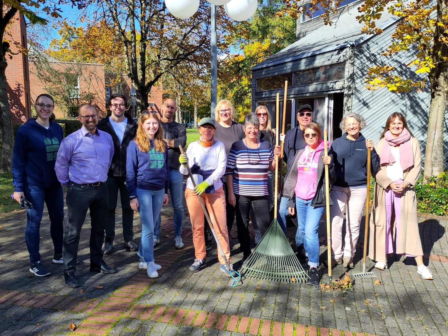 Mit Rechen und Besen bewaffnet wurde dem Laub zu Leibe gerückt, aber auch Büsche wurden mit geeignetem Werkzeug beschnitten.