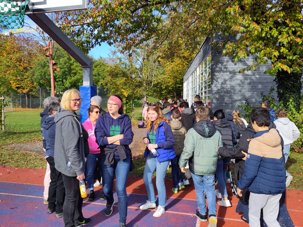 … und dann gab es auch noch eine Brandschutz-Übung, zu der die Kinder und Jugendlichen aus allen Richtungen auf den Sportplatz strömten!