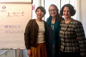 Frau Saki Yoshida aus Yokohama (Bedeutung des Schriftzeichens) vom Kanazawa Stadtteilbüro, Sektion für regionale Entwicklung (im Foto links) traf Petra Bauer-Wolfram von der Stiftung Gute-Tat und Dr. Gerlinde Wouters von FöBE (Förderstelle Bürgerschaftliches Engagement, rechts). Frau Yoshida zeigte sich sehr interessiert an einem Austausch zum Thema Bürgerschaftliches Engagement und wird zu diesem Zweck auch am