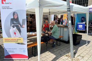 Bringt eure alten Laptops doch gleich mit! Am 21. Juli fand die Klima.Dult 2024 statt und unsere Koordinatorin der Anlaufstelle Laptop-Spenden Connie Oettl war mit unserem Kooperationspartner Fritz Letsch von „Hey, Alter“ dabei. „Zwischen 11:00 und 16:00 war gut was los – es gab zwar nicht so viele Laptopspenden, wie erhofft, aber es haben sich