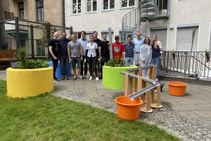 Porsche Consulting GmbH beim Kindergarten Maria Heimsuchung Wasserbahnen für den Sommer Am 7. Juni 2024 fanden sich 13 Mitarbeiter*innen der Porsche Consulting GmbH in einer anderen Arbeitsumgebung ein als sonst, nämlich im Kindergarten. Genauer im Kindergarten Maria Heimsuchung im Stadtteil Schwanthalerhöhe/Westend, einem der dichtest besiedelten Stadtbezirke Münchens. Die Mehrheit der Kinder in der Einrichtung hat